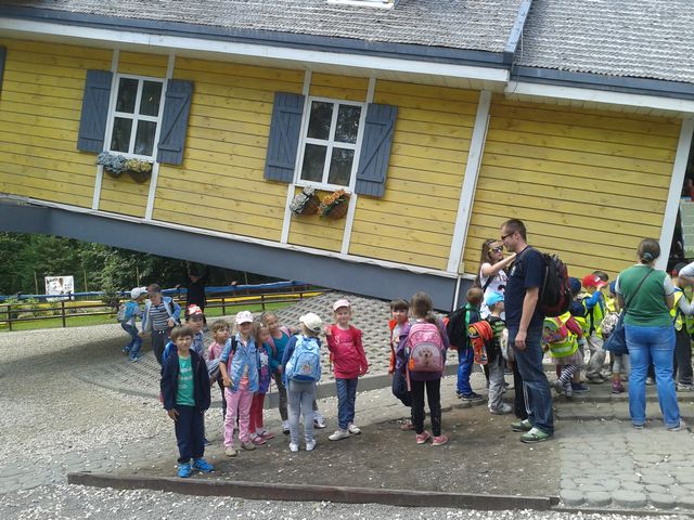 16 czerwca „zerówiaki” wybrały się na wycieczkę do Parku Edukacji i Rozrywki „Farma Iluzji”. Od samego początku wiedzieliśmy, że będzie to niezapomniany wyjazd pełen zaskakujących i magicznych atrakcji. Po krótkim wykładzie na temat iluzji udaliśmy się na zwiedzanie parku, aby na własnej skórze przekonać się o co z tą iluzją tak naprawdę chodzi ;) Odwiedziliśmy Chatę Tajemnic, gdzie prawo grawitacji zupełnie wariowało i musieliśmy mocno trzymać się na nogach, gubiliśmy i odnajdywaliśmy drogę w Wiklinowym Labiryncie. Każdy z nas sprawdził swoje umiejętności na Ścieżce Zdrowia, Każdy poczuł się jak traper na Szlaku Trapera i daliśmy się nieźle zakręcić w Tunelu Zapomnienia. Odpoczywaliśmy na plaży w Zatoce Piratów łowiąc rekiny i wykopując skarby. Niektóre dziewczynki, te małe i te większe zapragnęły zamienić się w Syreny...Oglądaliśmy meble olbrzyma, graliśmy w gigantyczne szachy, odwiedziliśmy zwierzęta- kózki, króliki i kucyki i robiliśmy wiele innych zajmujących rzeczy. Po radosnej zabawie na placu zabaw i na Polu Dmuchawców zakończyliśmy pobyt na farmie kiełbasą z ogniska. Było SUPER !!!