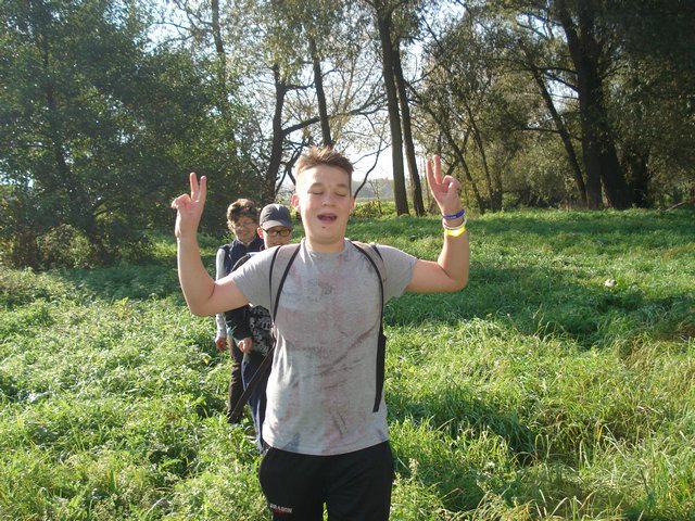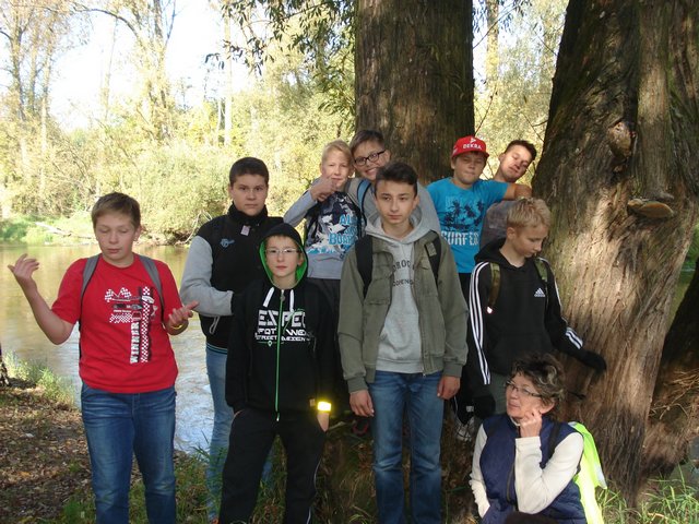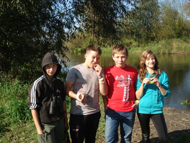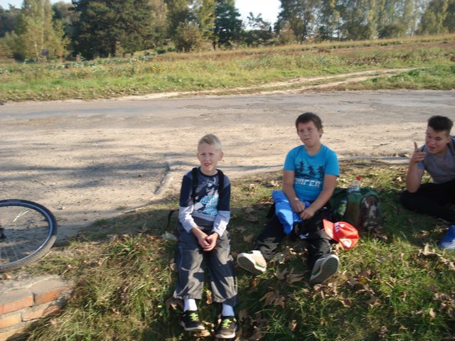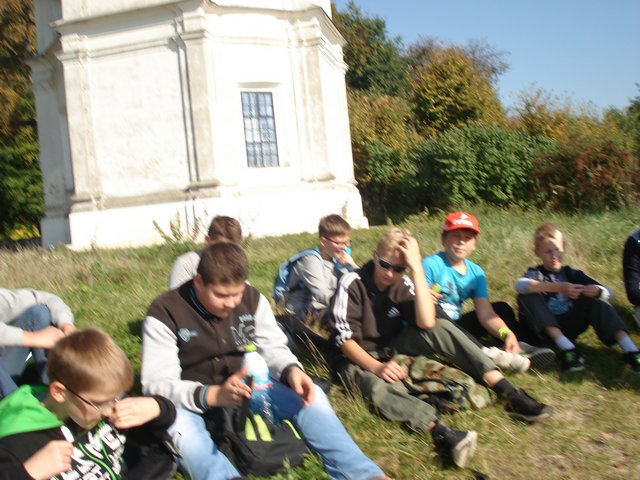 Po dłuższym odpoczynku pojechaliśmy nad rzekę Wieprz, miejsce do położone jest na terenie Nadwieprzańskiego Parku Krajobrazowego i jechaliśmy bezpośrednio nad samą rzeką, obserwując jej szybki i niebezpieczny nurt, widzieliśmy jej wijące się koryto, po brzegi wypełnione wodą. Dojechaliśmy do urokliwego ujścia rzeki Bystrzycy w Spiczynie i tutaj kolejny odpoczynek nad brzegiem rzeki, do którego zachęcało otoczenie i piękna jesienna pogoda. Chłopcy Oliwier, Bartek i Remek wdrapywali się na wierzby, inni badali głębokość wody, opalali się a Samuel kończył swoje jedzenie, dzieląc się ze wszystkimi. W drodze powrotnej chłopcy z gimnazjum: Konrad i Dionizy zachęcili nas, do zwiedzenia zawieprzyckiego wzgórza, na którym pokazali nam wejście do podziemi, obecnie remontowanych. Przy ruinach Remek przypomniał legendę zawieprzycką – nieszczęśliwej miłości i zrobiliśmy powtórzenie wiadomości historycznych, związanych z odwiedzanymi miejscami. Opiekunami w czasie wycieczki byli p. Ela Dziewa, p. Bożena Rycek, p. Ewa Szewczyk, wolontariuszami byli uczniowie gimnazjum: Przemek, Łukasz, Konrad, Dionizy.