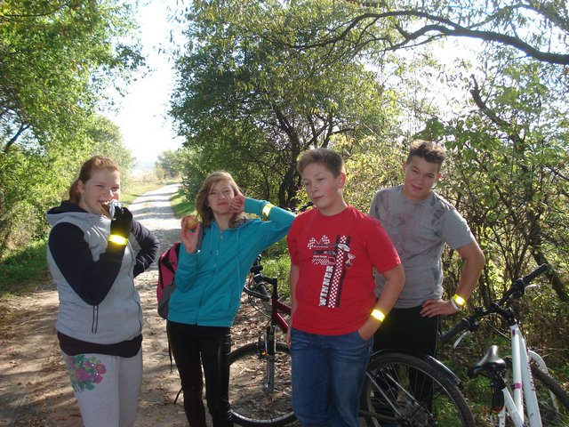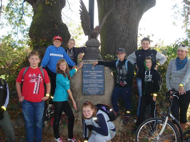 Dnia 4 października 2014 roku odbyła się wycieczka rowerowa do Kijan. Pogoda sprawiła nam super niespodziankę, ponieważ rano był przymrozek, ale w ciągu dnia świeciło słońce i było ciepło. Trasa wycieczki, wynosiła około 36 km, prowadziła przez Łysaków, gdzie oglądaliśmy dolinę rzeki Bystrzycy i zabytkowe kapliczki. Drugi postój był w Sobianowicach przy ujściu rzeki Ciemięgi, wpadającej do Bystrzycy. Następny odpoczynek w Charlężu na moście rzeki Bystrzycy, oglądaliśmy jesienne pejzaże terenów wokół rzeki. Przez łąki wjechaliśmy na wzniesienie „Łysa Góra” i tutaj krótki postój, aby podziwiać okolicę i zorientować się w terenie. W Kolonii Spiczyn odkryliśmy pomnik upamiętniający śmierć dwóch poległych powstańców styczniowych z oddziału płk. Kajetana Cieszkowskiego ps. Ćwiek. Pomnik został postawiony w 150 rocznicę wybuchu powstania styczniowego przez mieszkańców. Przy pomniku była okazja, aby przypomnieć sobie historię Polski z 1863 roku.