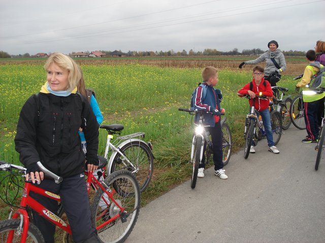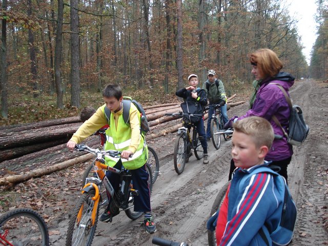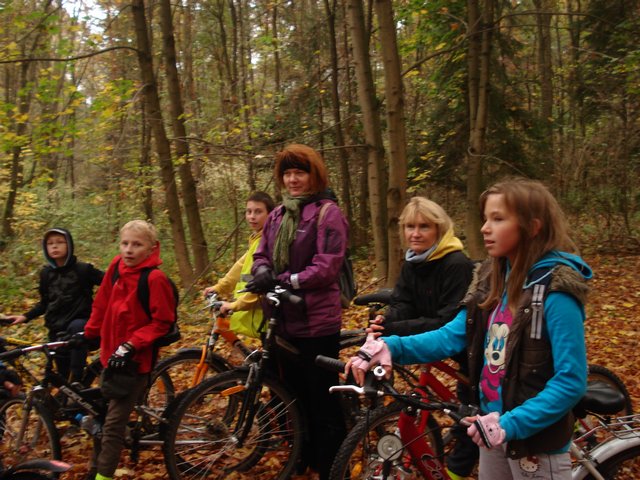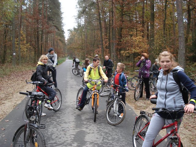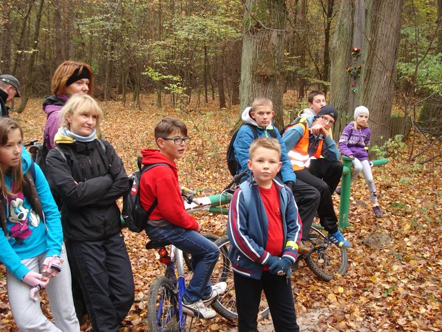 Droga powrotna prowadziła wzdłuż rzeki Wieprz, którą przekroczyliśmy w Czerniejowie i znaleźliśmy się w Rokitnie i tam przejechaliśmy obok nowoczesnego wysypiska śmieci. Do Pliszczyna dojechaliśmy przez „las niemiecki”, który zaskoczył nas jesiennymi kolorami i ciszą. Niektórzy z przerażeniem twierdzili, że widzieli wilka, ale Karol zachował zimną krew i odgonił „głodnego wilka” i szczęśliwie powróciliśmy do Pliszczyna. Przejechaliśmy 58 km, spaliliśmy 1800 cal i zakończyliśmy sezon wycieczek rowerowych. Dziękujemy opiekunom i zapraszamy wiosną 2015 roku.
