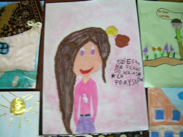 Na początku listopada uczniowie klasy II wykonali prace plastyczne na Ogólnopolski konkurs „Prawa dziecka – oczami dzieci”. Przed przystąpieniem do wykonywania prac dzieci zapoznały się z Konwencją Praw Dziecka, a potem malowały, wycinały i wyklejały plasteliną. Powstały ciekawe prace, z których wybraliśmy osiem i wysłaliśmy na konkurs ogólnopolski. Wiemy, że bardzo trudno jest zdobyć nagrodę, ale Julka, Małgosia, Melissa, Marysia, Iza, Nikola, Adrian i Wiktor niecierpliwie czekają na rozstrzygnięcie konkursu. Trzymamy za nich kciuki!