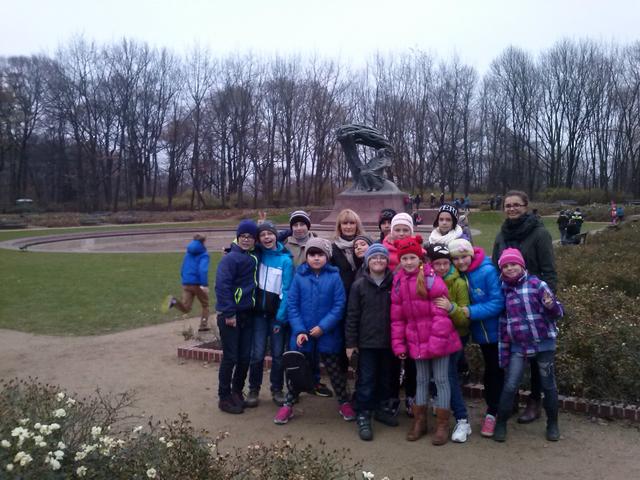 Dnia 13 listopada 2014r. odbyła się wycieczka do Warszawy. Zwiedzaliśmy tam Łazienki Królewskie, Centrum Nauki “Kopernik” oraz Muzeum Techniki. Najpierw spacerowaliśmy po parku, podziwiając jesienną przyrodę. Potem zobaczyliśmy scenę, która wydawała nam się zburzona. Pan przewodnik powiedział nam, że miejsce to nie jest zburzone, tylko w tamtych czasach modne było budowanie zniszczonych budynków. Oglądaliśmy również pomnik Fryderyka Chopina. Jest on bardzo duży i realistyczny. Przedstawia on także symbol Mazowsza - wierzbę. Gdy tam byliśmy, widzieliśmy również Kancelarię Prezydenta RP. Pobyt w Łazienkach Królewskich umiliły nam rude wiewiórki, które skakały po drzewach i krzewach i blisko nas podchodziły.