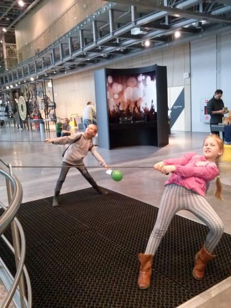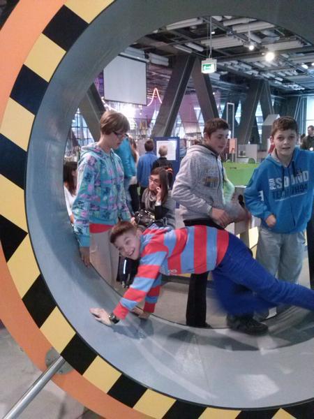 mogliśmy chodzić po krzywej podłodze.Gdy stało się bardziej na górze na ekranie widzieliśmy, że jesteśmy duzi, ale gdy stało się na dole widać było, że jest się małym. Świetna była jazda na rowerze, kiedy to mogliśmy zobaczyć swój szkielet i kości na ekranie. Można było też zrobić bardzo dużą bańkę mydlaną. Na balkonie jedna osoba musiała mocno dmuchać, a na dole dwie pozostałe osoby musiały ciągnąć za sznurki i tak powstawała ogromna bańka. Nawet byliśmy na księżycu. Trzeba było się położyć na krzesełku i odbić się jak najmocniej, a wtedy na ekranie widzieliśmy siebie jak podskakujemy na tej planecie. Przez moment zamieniliśmy się w naukowców i robiliśmy różne doświadczenia na stanowiskach naukowych.