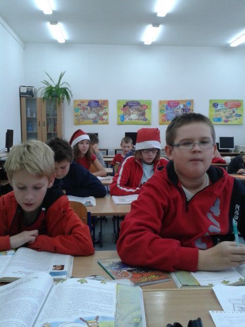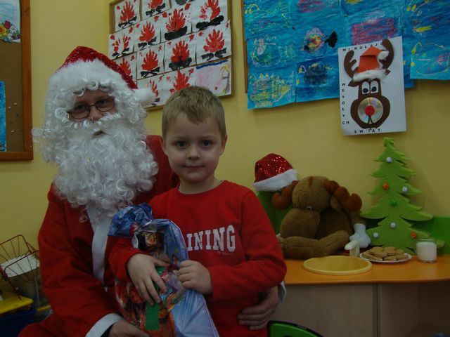 W piątek z ogromną niecierpliwością każde dziecko w szkole, i to duże ,i to małe oczekiwało wizyty św. Mikołaja.Kto by Go nie znał? Nie lubił? W końcu nas odwiedził. Ale, aby nam wręczyć prezenty, musiał przejśc test potwierdzający oryginalność. Tak więc ciasteczka i szklanka mleka dowiodły, że to był gość, na którego czekaliśmy od rana. My też mieliśmy dla Niego prezent- piękną świateczną piosenkę i kartkę z życzeniami.Za rok także będziemy na Ciebie czekać!!!Żeby do tej wizyty Mikołaja zachęcić, postawiliśmy na modę mikołajkową i każdy postarał się o jakiś czerwony element stroju.