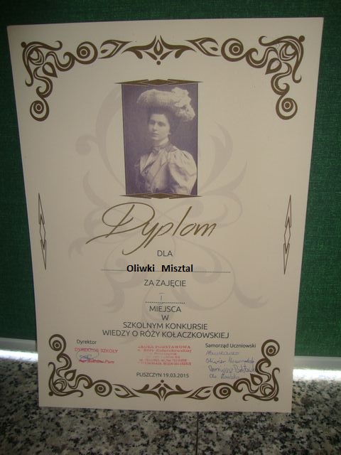 19 marca w szkole miały miejsce obchody Dnia Patrona. Jak co roku zebraliśmy się, by uczcić pamięć naszej patronki- Róży Kołaczkowskiej. Wspaniała prezentacja przygotowana przez p.Ewę Szewczyk i uczniów, przybliżyła nam fakty i wydarzenia z życia patronki. Kolejnym punktem, był konkurs wiedzy o życiu i działalności Róży Kołaczkowskiej, przygotowany przez opiekunkę SU- p. Anię Buczkowską. Uczniowie stanęli w szranki i ostro walczyli o punkty odpowiadając na pytania. Największą wiedzą wykazała się Oliwka Misztal z 3 klasy. Kolejne miejsca zajęli Konrad Stachal i Ola Owczarczak. Polecamy także wystawę z okazji 45 rocznicy śmierci naszej patronki, którą można obejrzeć, gdy tylko przekroczy się progi naszej szkoły.