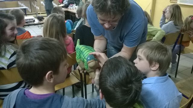Niespodziewanie w przeddzień pierwszego dnia wiosny, pojawiły się w Pliszczynie dinozaury. Świadków tego wydarzenia było wielu i wszyscy mogą potwierdzić, że wrażenia z tego niecodziennego spotkania były niesamowite. Największą sensancję wzbudził młody dinozaurek o imieniu Pleo, który ze zdumieniem reagował na człowieka, bo jeszcze takiej istoty nie widział w swoim krótkim życiu. Dobrze, że w pobliżu nie było jego mamy Tyranozaura Rexa, bo wielu z nas mogło by stać się niezłym śniadankiem dla tego stworzenia. Na szczęście młody dinozaur był miłym "chłopakiem" i szybko się z nami zaprzyjaźnił. Niestety nie mógł z nami zostać na dłużej i po krótkim spotaniu musiał nas opuścić, co było powodem wielu smutków i żalów wśród okolicznej ludności. Wcześniej jednak pokazał nam swoje narodziny i przygody w świeci dużych i niekiedy przerażających dinozaurów. Bardzo to było ciekawe, ale wszyscy z wielką ulgą, przyjęli to, że nie muszą w drodze do szkoły spotykać takich stworzeń. Potem, tak jak nagle się pojawiły te niesamowite stowrzenia w Pliszczynie taki i nagle zniknęły. Niejeden z nas zastanawiał się czy one tu naprawdę były czy tylko nam się to wszystko śniło?