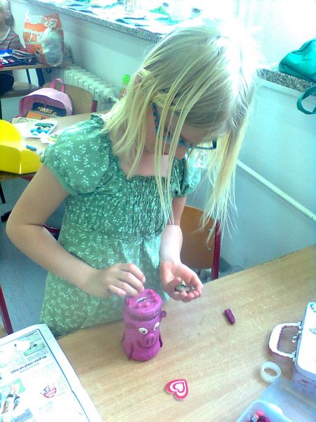 Uczniowie klasy drugiej wylądowali na kolejnej planecie programu „Bezpieczne wędrówki. Od grosika do złotówki”- na planecie Skarbonka. Poznawaliśmy rożne sposoby przechowywania pieniędzy, wybieraliśmy najbardziej bezpieczne miejsce na przechowywanie oszczędności. Na tej planecie uczyliśmy się prawidłowego odżywiania – analizowaliśmy Piramidę Zdrowia. Dużo radości było podczas omawiania i uzupełniania komiksu o Grosiku, ale największą frajdę sprawiło nam wykonanie własnej skarbonki. Popatrzcie, jakie wyszły kolorowe i radosne. Teraz spróbujemy OSZCZĘDZAĆ! Czeka już na nas następna planeta- ZABAWKA! Tam to będzie się działo!