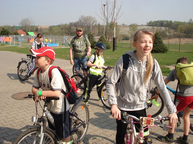 25 kwietnia rozpoczęliśmy sezon rowerowy i pojechaliśmy do Krzesimowa, położonego od szkoły około 17 km. Przed wyjazdem zapoznaliśmy się z mapą, dokładną trasą wycieczki i zasadami bezpieczeństwa w czasie jazdy rowerem. Początek trasy prowadził Doliną Ciemięgi i Doliną Bystrzycy do Łuszczowa, gdzie, dzięki uprzejmości księdza proboszcza Janusza, poznaliśmy historię kościoła w Łuszczowie i obrazu św. Barbary.