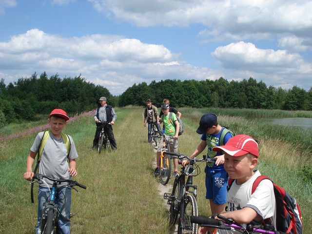 24 czerwca wyruszyliśmy na wycieczkę rowerową na Pojezierze Łęczyńsko-Włodawskie nad jezioro Krasne Krzczeń. Odkrywaliśmy nowy szlak rowerowy, wybraliśmy najbezpieczniejsze i atrakcyjne drogi przez: Pliszczyn, Łysaków, Sobianowice, Bystrzycę, Charlęż, Zawieprzyce, Radzic Stary, Kocią Górę, Zezulin, Krzczeń. Pierwsze pytanie czy jezioro jest większe od Zalewu Zemborzyckiego? Wrażenie jest takie, że jest większe, ale niestety zalew ma 278 ha a jezioro Krasne Krzczeń ma 175 ha. Objechaliśmy jezioro dookoła po wale ochronnym. Gdy tylko zajechaliśmy nad jezioro w miłej atmosferze odpoczywaliśmy i zjedliśmy kanapki, wymieniając się nimi wzajemnie, aby każdy nie jadł dwóch takich samych. Widzieliśmy nurkującego perkoza, ryby, licznych wędkarzy i wały porośnięte kolorowymi kwiatami. Pewien odcinek drogi jechaliśmy wzdłuż kanału melioracyjnego Wieprz-Krzna, najdłuższego w Polsce, liczącego 140 km. Wokół jeziora jechaliśmy w ciszy, aby nie płoszyć ryb wędkarzom, obserwowaliśmy ptaki na i nad jeziorem. Wszyscy stwierdziliśmy, że jeszcze tutaj wrócimy i pokażemy innym, jak piękne jest lubelskie.