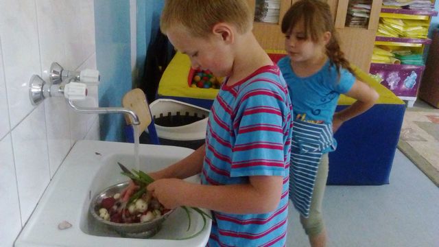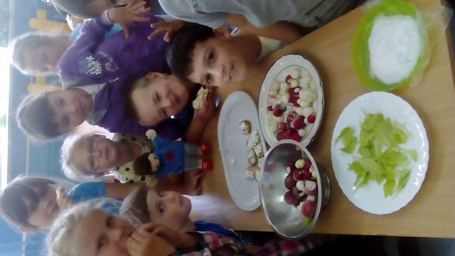 Dzieci z klasy pierwszej w końcu doczekały się zbiorów ze szkolnego- warzywnego ogródka. W poniedziałek zamiast lekcji były zadania kulinarne. Niektórzy robili kanapki, niektórzy twarożek a jeszcze inni podjadali i dopingowali do pracy. Głównymi produktami były rzodkiewki ( białe i czerwone), szczypiorek i sałata. Istotny jest fakt, że warzywa były ekologiczne bez śladu chemicznych nawozów. Pierwszaki zapraszały na degustację każdego kogo spotkały na korytarzu szkolnym. W lecie w ogródku urosną dynie. Ciekawe co z nich zrobimy?