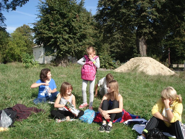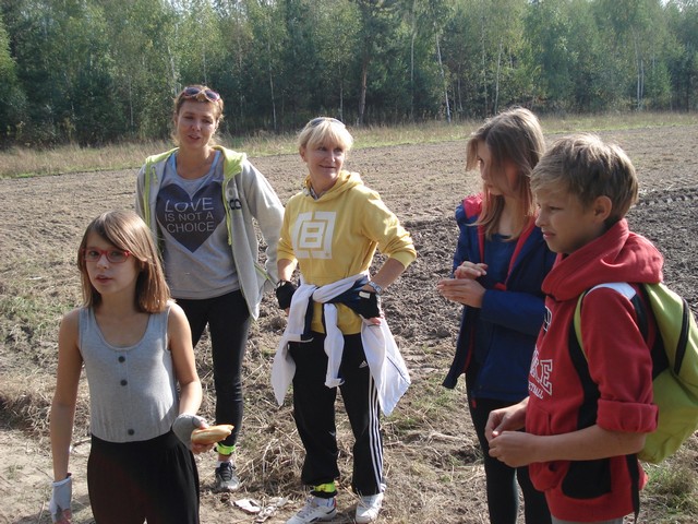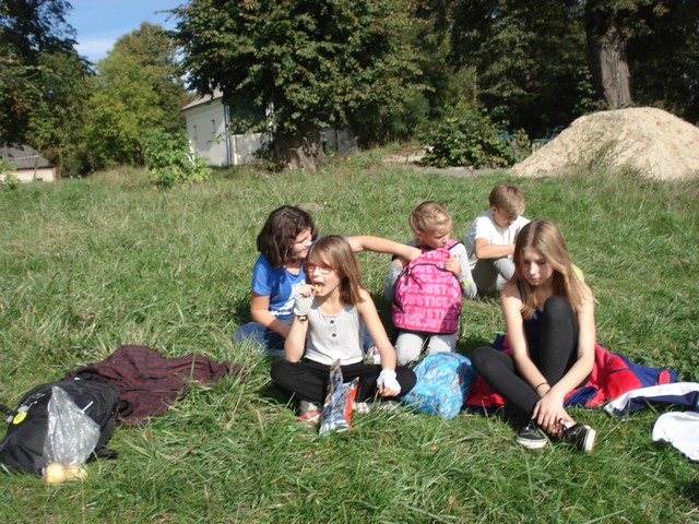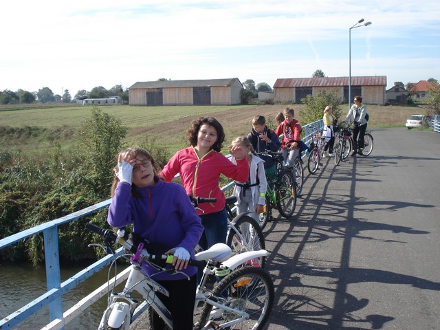 3 października rowerami pojechaliśmy do Zawieprzyc, wrześniowe weekendy były deszczowe i nie było żadnej wycieczki rowerowej, dlatego radość nasza była wielka, gdy wreszcie mogliśmy wyruszyć. Pojechaliśmy skrajem lasów niemieckiego i jawidzkiego. Droga była urozmaicona różnymi przeszkodami, niektórzy mogli się popisać swoimi umiejętnościami i kondycją. Zatrzymaliśmy się na rzece Wieprz w Jawidzu, budzący respekt swoimi wirami i wartkim nurtem. Jadąc przez łąki natknęliśmy się na wygrzewające się zaskrońce, jednego Karolina chciała „upolować”, ale nie miała czym. Opiekunowie odetchnęli z ulgą.