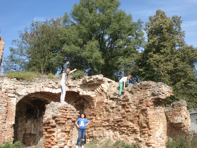 Na wzniesienie zawieprzyckie dotarliśmy szybko i mogliśmy podziwiać w słońcu ruiny zamku i oranżerii. Dziewczyny zdobyły najwyższe ruiny i szukały miejsca, gdzie mogła być zamurowana piękna Greczynka, w której zakochał się właściciel zamku. Pokrótce przypomnieliśmy sobie wiadomości o Janie II Sobieskim, który odwiedził Atanazego Miączyńskiego, powracając spod Wiednia. Chodziliśmy śladami Marii Skłodowskiej, która kilka razy odwiedzała swojego stryjecznego dziadka, spędzając tu wakacje. Wracaliśmy zadowoleni, niektórzy pytali, kiedy znowu kolejny wyjazd?