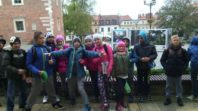 Pomimo, że Sandomierz znany jest obecnie z serialu „Ojciec Mateusz” warto go zobaczyć ze względu na piękne położenie, historię i zabytki. My postanowiliśmy zrobić to dnia 15 października 2015r. Wyjeżdżając spod szkoły z Pliszczyna pogoda jeszcze była w miarę optymistyczna, jednak gdy zbliżaliśmy się do celu naszej podróży niebo nad nami płakało. Ale chyba ze szczęścia, że zobaczyło tak wspaniałą i barwna grupę. Wraz z naszym pilotem udaliśmy się na sandomierski rynek, gdzie rozpoczęła się nasza gra miejska. Wszystko to niestety działo się w strugach deszczu a mapa za pomocą, której poruszaliśmy się po rynku prawie nam się rozpadła. Zadania jednak zostały wykonani a wszyscy uczestnicy nagrodzeni za swoją niemałą pracę i wysiłek.