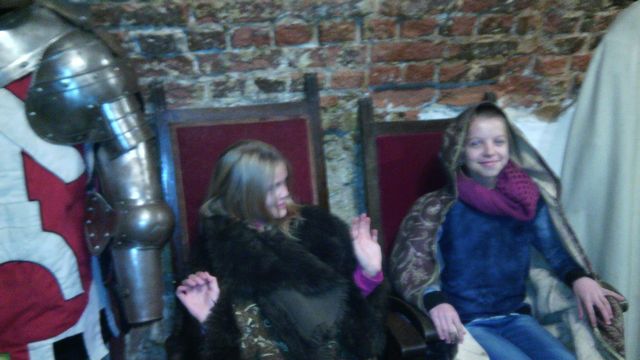 Po zabawie na rynku przyszedł czas na odwiedzenie Zbrojowni, w której czekała nas nie lada niespodzianka - można było przymierzać i zakładać na siebie części zbroi rycerskiej i piękne suknie z dawnej epoki.