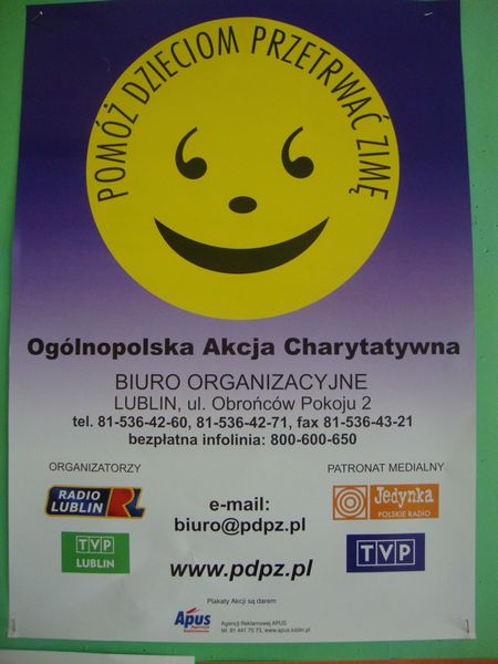 Już po raz kolejny wspieramy akcję "Pomóż Dzieciom Przetrwać Zimę" W najbliższą niedzelę- 29 listopada odbędzie się zbiórka darów. Zbiórka trwałej żywności, odzieży,środków czystości, słodyczy i zabawek dla potrzebujących rodzin.Zachęcamy do wsparcia akcji swoim udziałem. Dary można przynosić także do szkoły, do swoich wychowawców. W szkole czekamy na paczki do 11 grudnia.