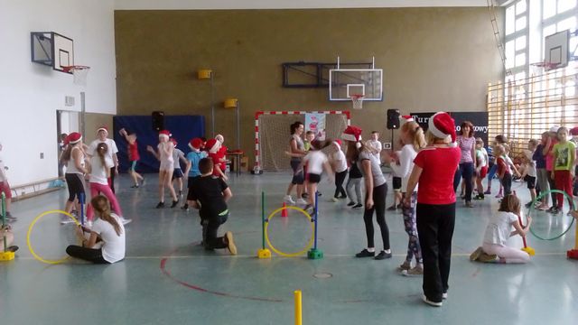 Naszą świąteczno - sportową imprezę rozpoczęliśmy wspólną rozgrzewką w formie fitness przy dźwiękach świątecznej muzyki. Każdy starał się przygotować mięśnie do rozgrywek sportowych i nikt się nie oszczędzał a uśmiech gościł przez cały czas na wszystkich buziach:)