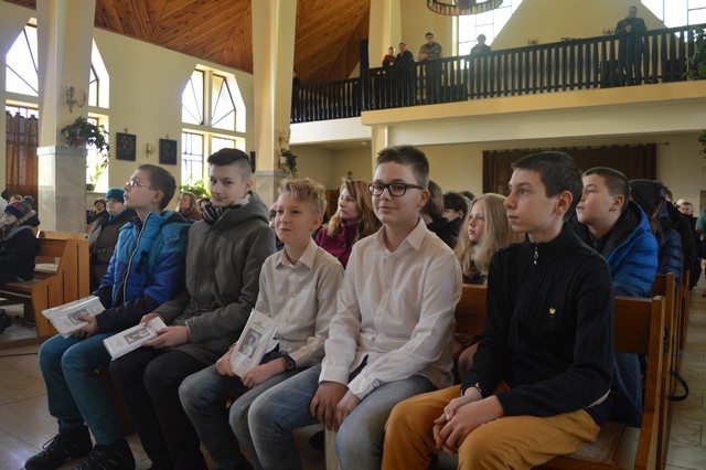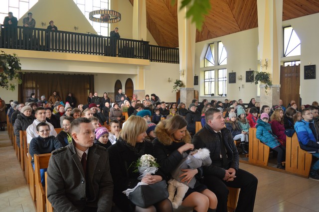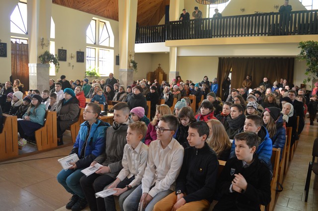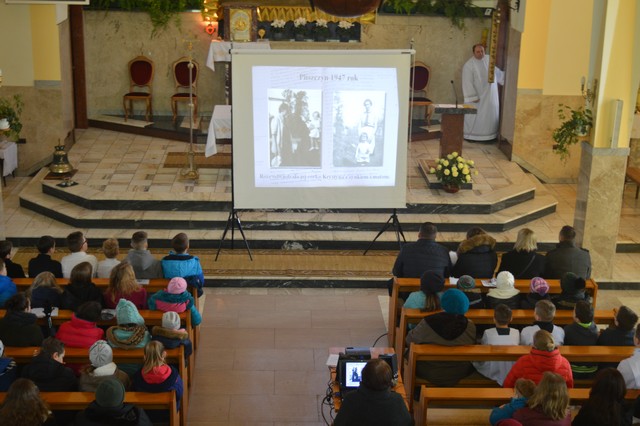 Uczniowie naszej szkoły zaprezentowali życiorys Róży Kołaczkowskiej mieszkańcom parafii Najświętszego Serca Jezusowego w Pliszczynie w niedzielę 6 lutego przed mszą świętą. Biografia powstała na podstawie listów Róży i jej dzieci, z których wynika, że Patronka naszej szkoły była wrażliwą, życzliwą, religijną, mądrą kobietą, matką i patriotką. Dla uczniów, nauczycieli i mieszkańców Pliszczyna może być ona wzorem w codziennym życiu, dlatego warto poznawać i zgłębiać jej życiorys. Na pamiątkę pokazu uczniowie rozdawali foldery ze zdjęciami i myślami Róży Kołaczkowskiej.