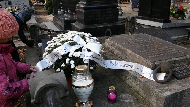 Dnia 26 pażdiernika b. r. przedstawiciele Samorządu Uczniowskiego naszej szkoły podstawowej razem z uczniami klasy szóstej odwiedzili grób naszej patronki Róży Kołaczkowskiej na cmentarzu przy ulicy Lipowej w Lublinie. Zdecydowana większość z nas była tam po raz pierwszy i mieliśmy pewne problemy z odnalezieniem grobu.Na szęście, po półgodzinnych poszukiwaniach oraz telefonicznym wskazówkom pani Dyrektor, udało nam się go wypatrzeć. Najpierw dzieci gruntownie go wysprzątały, wyrzucając całą grudę liści oraz starych zniczy. Póżniej nastąpiła chwila refleksji w ciszy oraz modlitwa za ś. p. Różę Kołaczkowską połączona z naszą wdzięcznością wobec wszystkiego co nasza patronka zrobiła dla oświaty w Pliszczynie.