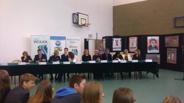 Dnia 29 listopada 2016r. w naszej szkole odbyła się debata "STOP AGRESJI" w ramach projektu "Akademia bezpieczeństwa w Gminie Wólka". Wśród zaproszonych gości byli: Wójt Gminy Wólka p. Edwin Gortat, Prezes Fundacji szczęśliwe Dzieciństwo p. Wacław Czakoń, Kurator rodzinny p. Teresa Wąsikowska, Młodszy Aspirant p. Aneta Malesa oraz Kierownik OPS w Wólce p. Iwona Opajdowska a także zaproszeni dyrektorzy, nauczyciele i uczniowie ze wszystkich szkół z terenu gminy. Debata dotyczyła przestępczości i demoralizacji nieletnich, bezpieczeństwa młodzieży i współczesnych zagrożeń. w ramach debaty odbyła się dyskusja w następujących panelach tematycznych: