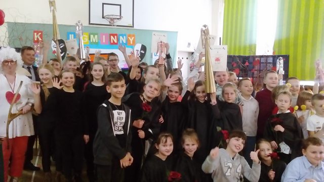 Nasz zespół teatralny z kl.III- „Promyczki” zajął pierwsze miejsce zdobywając złotego Amora. Uczniowie w składzie -Aleksandra Wilkołazka, Wiktoria Miazga, Wiktoria Kusak, Daria Nizioł, Amelia Jakubowska, Natalia Skrzypek, Natalia Ponikiewska, Klaudia Rowińska, Maja Piotrowicz,Julita Krzysiak, Kacper Purc i Karol Klempka przedstawili scenkę