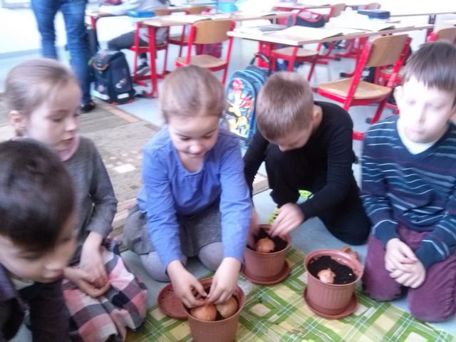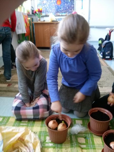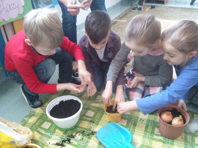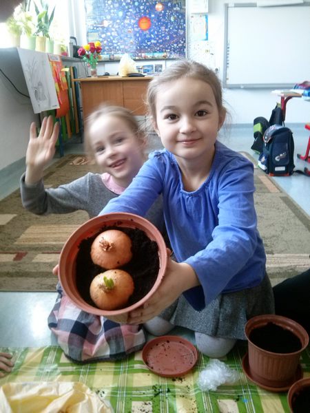 Uczniowie klasy I poczuli wiosnę i postanowili utworzyć mini ogródek. Przynieśli ziemię, doniczki, cebulki i rzeżuchę. Byli bardzo pracowici, wiec szybko na parapecie ustawili doniczki z posadzonymi roślinami. Pracy przybyło dyżurnym, ale jeśli systematycznie będą podlewać rośliny; one odwdzięczą się smakowitymi nowalijkami!