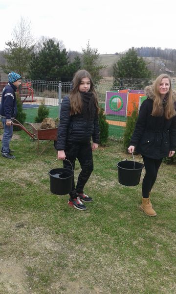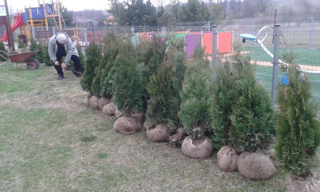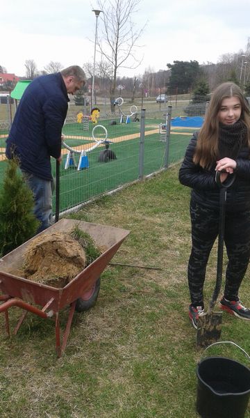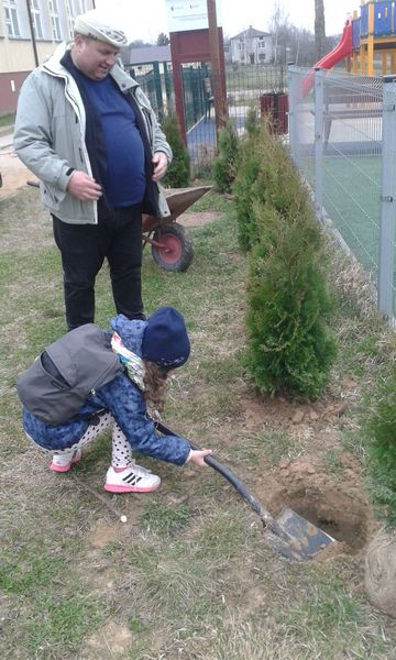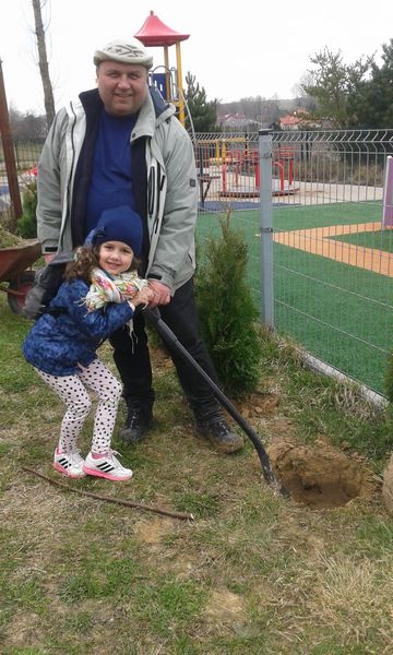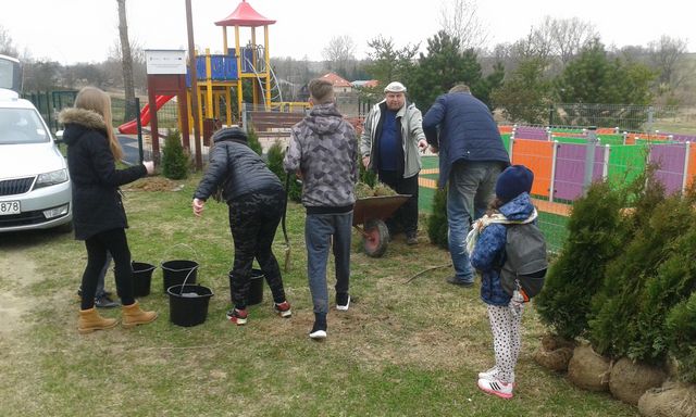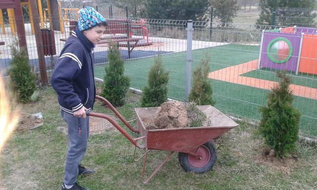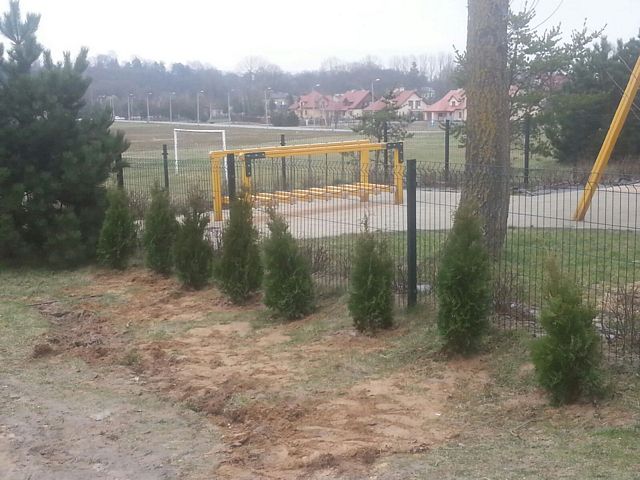 Chciałam Wam powiedzieć, że u nas nudno raczej nie jest...Wiosna już się rozgościła, a z wiosną idzie zielone. Nasz ksiądz Proboszcz to taki człowiek, który nas rozpieszcza nie tylko słodkościami. Ponieważ jest fascynatem zielonego postanowił nam sprawić nie lada prezent. Spójrzcie sami na plac zabaw przy naszej szkole w nowej szacie. Ks. Henryk Lachur ufundował "zielony płot", a ponieważ nasz ksiądz to dobry człowiek, a wiadomo, że dobro wraca do dobrych ludzi w dwójnasób, to właściciel placu z roślinami w Wólce- p.Rafał Michon także postanowił w tym uczestniczyć ofiarowując nam część tujek. To bardzo szczodry i miły gest. Dziękujemy!!! Jak widać, przygotowujemy się do obchodów stulecia naszej szkoły na wielu płaszczyznach :) Dziś po południu kopali, sadzili, podlewali zarówno ci mali, jak i ci duzi. Ks. Henrykowi pomagali absolwenci naszej szkoły, rodzice i obecni uczniowie. Dziękujemy Oli, Monice, Mateuszowi, Jackowi i p. Leszkowi Anrzejewskiemu Jak wyszło? Moim zdaniem fantastycznie, a Wy ocenicie to jutro. Teraz pozostało nam jedno wspólne zadanie- dbać, dbać i jeszcze raz dbać o ten zielony zakątek.