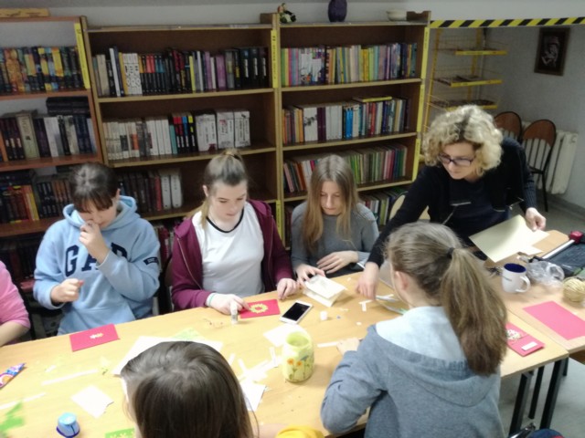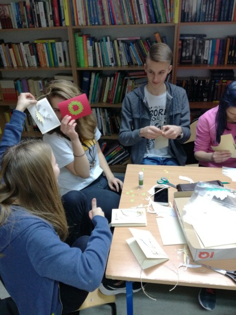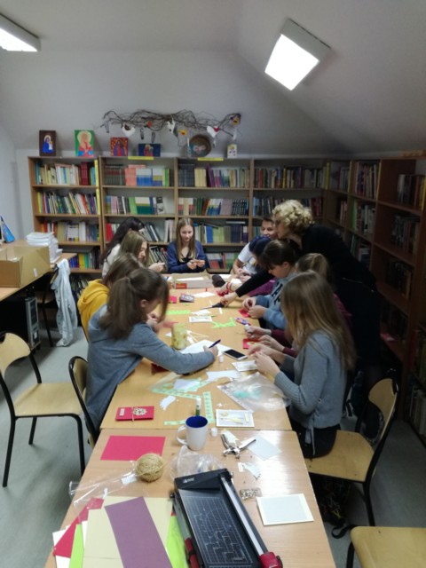 Każdego roku przed świętami wolontariusze ze Szkolnego Klubu Wolontariusza spotykają się na przedświątecznych warsztatach, by zasiąść do ręcznych robótek. W tym roku podczas zajęć powstawały kartki bożonarodzeniowe wykonywane różnymi technikami.