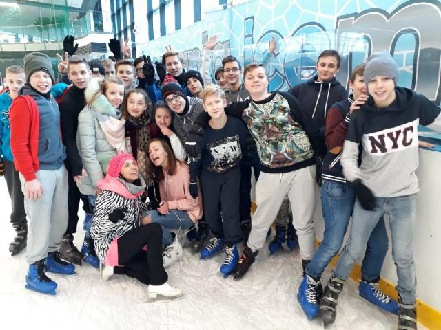 Mikołajkowych atrakcji ciąg dalszy. Uczniowie II klas gimnazjum, w ramach prezentu od św. Mikołaja, postanowili wybrać się na łyżwy. Towarzyszyły im wychowawczynie: p. Ewa Boryc, p. Barbara Kozyra, p. Beata Mazur-Wójtowicz oraz p. Iwona Pietrzak-Płachta. Niektórzy stawiali pierwsze kroki na lodzie, inni doskonalili swe umiejętności łyżwiarskie. Wszyscy doskonale się bawili i wrócili do szkoły w doskonałych nastrojach,prosząc, by taki wyjazd powtórzyć jeszcze raz.