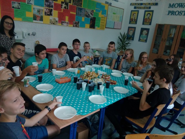 Klasa II c gimnazjum ma się dobrze. Dużo się w niej dzieje. W tym roku nową wychowawczynią została p. Beata Mazur-Wójtowicz, która obiecała uczniom, że nie będą narzekać na brak atrakcji. Wsłuchując się w ich potrzeby, zorganizowała warsztaty o zdrowym odżywianiu, w czasie których młodzież przygotowywała pyszne potrawy z owoców, warzyw, kaszy jaglanej: sałatki, koktajle, szaszłyki, słodki deser bez cukru.