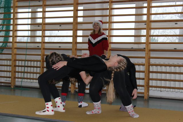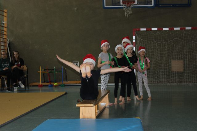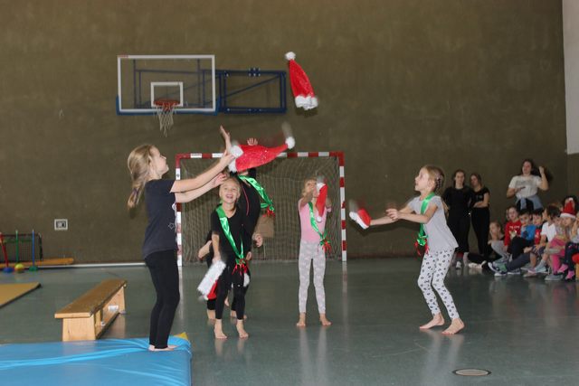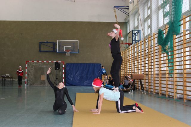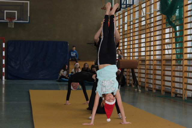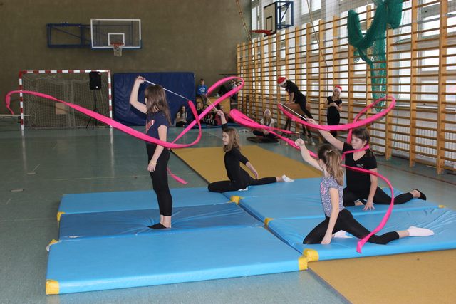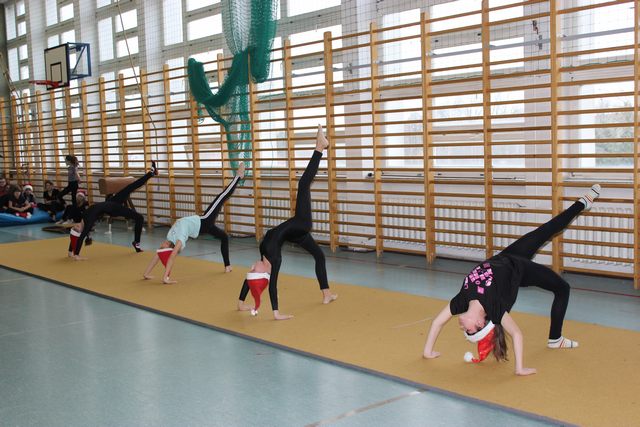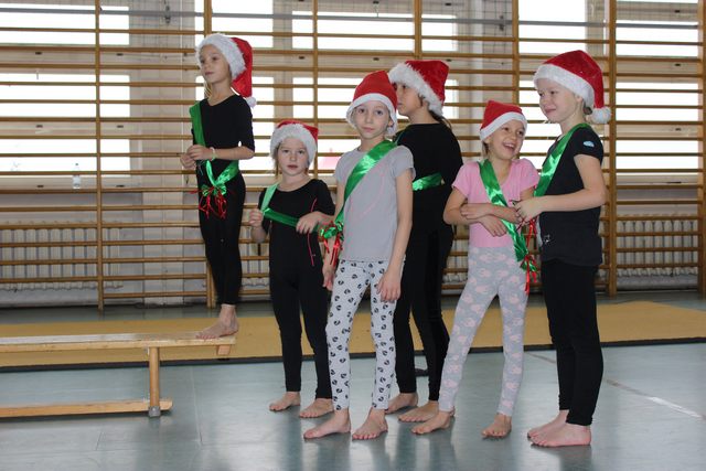 Dnia 5 grudnia 2018r. przed Sportowym Turniejem Mikołajkowym odbył się Mikołajkowy Pokaz Gimnastyczny w wykonaniu uczennic od przedszkola do klasy VIII! Dziewczynki zaprezentowały się we własnych układach gimnastycznych w różnych kominacjach i figurach. Przygotowania trwały od września na zajęciach SKS-u pod kierunkiem pani Jolanty Reszko.