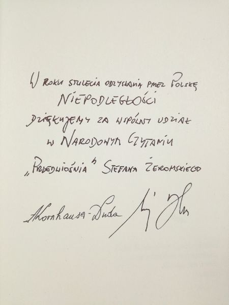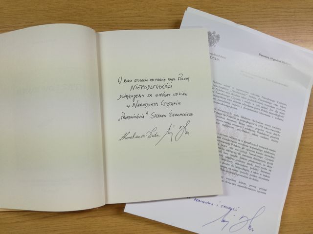 Do naszej biblioteki trafił wyjątkowy, okolicznościowy egzemplarz „Przedwiośnia” Stefana Żeromskiego sygnowany podpisami prezydenta Andrzeja Dudy oraz jego żony Agaty Kornhauser-Dudy. Do książki dołączono list od Prezydenta Rzeczpospolitej Polskiej.