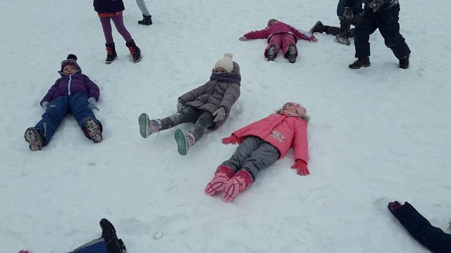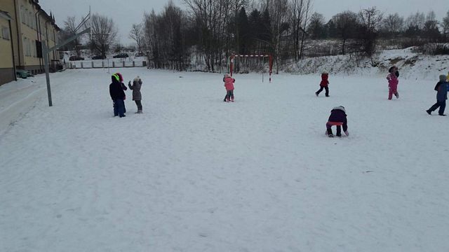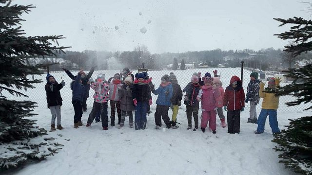 W piątek dzieci wraz z wychowawczyniami przygotowały przysmaki dla wszystkich ptaków. Zawiesiły karmnik, nasypały mieszankę ziaren, zawiesiły na sznurku słoninę… Dzieci poznały ulubione pokarmy dla wybranych ptaków, co można a czego nie wolno dawać ptakom do jedzenia, kiedy i jak długo je dokarmiać oraz wiele innych ciekawostek z życia ptaków. Po wykonaniu zadania nadszedł czas na wykorzystanie pogody na super zabawę… Dzieci rzucały się śnieżkami, robiły tzw. „aniołki”. Po prostu wspólnie, wspaniale się bawiły, ciesząc się prawdziwą zimą…