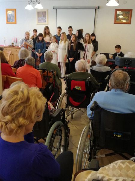 W tym roku, 2.02.2019 r., powiększeni o szkolny chór, odwiedziliśmy pensjonariuszy tego domu z okazji „Dnia Babci” i „ Dnia Dziadka”.