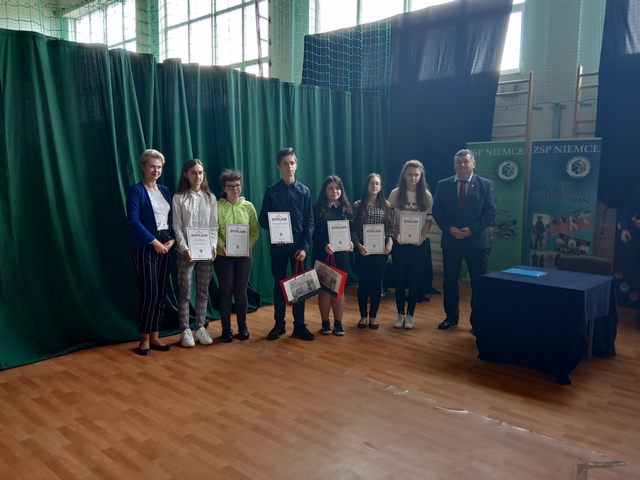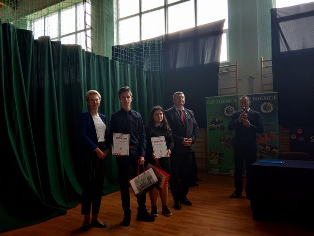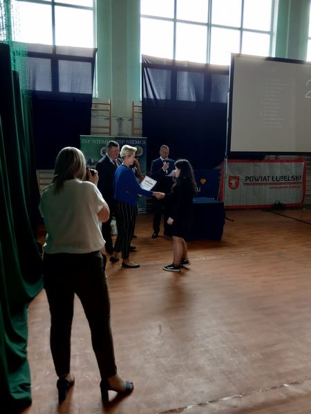Z okazji dwudziestolecia powstania Powiatu Lubelskiego, 29 maja 2019 roku odbył się w Zespole Szkół Ponadgimnazjalnych w Niemcach interaktywny turniej wiedzy o Powiecie Lubelskim. Naszą szkołę reprezentowali Klaudia Ponikiewska i Kacper Szewczyk z klasy VIII. Konkurs składał się z 21 interaktywnych pytań dotyczących historii powiatu, jego zabytków, atrakcji turystycznych i tradycji regionalnych. Nasi uczniowie pokonali 21 zespołów z innych szkół powiatu zdobywając pierwsze miejsce. Wykazali się ogromną wiedzą, umiejętnościami i refleksem, zwyciężając z wielką przewagą na pozostałymi ekipami. KLAUDIO, KACPRZE, GRATULUJEMY!!!