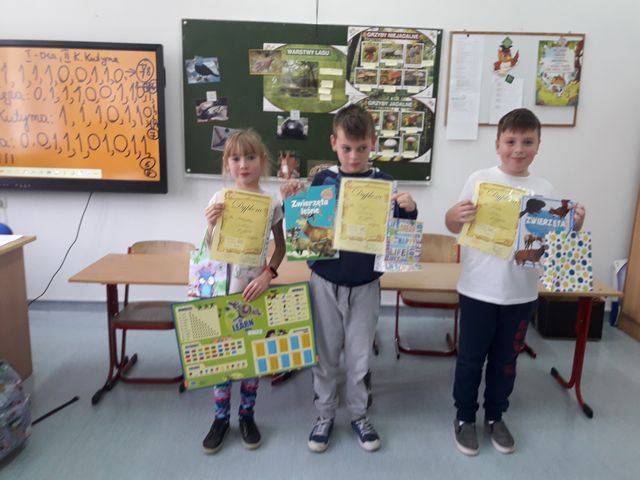 Laureatką konkursu plastycznego została Marika Nizioł, drugie miejsce zdobyła Michalina Bondos,trzecie- Agata Morawska. Zwycięzcy dostali nagrody związane z tematem projektu , a wszyscy uczniowie pamiątkowe leśne medale.