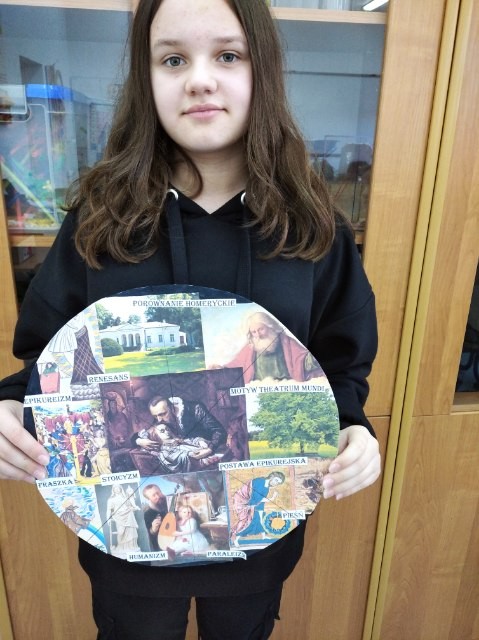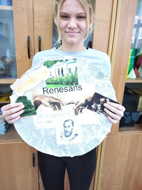 Miny siódmoklasistów były bezcenne, gdy zobaczyli, że chodzi o pizzę- kolaż. Tym razem miała to być nietypowa forma powtórzenia zagadnień związanych z twórczością Jana Kochanowskiego. Ten pomysł przypadł uczniom do gustu i sami wykonali podobne prace, przede wszystkim utrwalając sobie wiadomości na temat renesansowego poety.