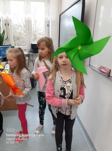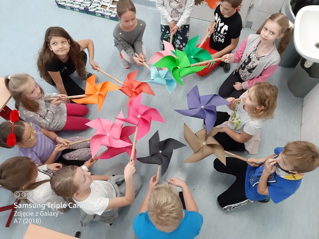 Uczniowie klasy 2b i 3 mieli okazję zapoznać się z tematem energii odnawialnej, poznać wodór jako paliwo przyszłości, utrwalić wiedzę na temat źródeł odnawialnych i nieodnawialnych, a na koniec samodzielnie wykonali kolorowe wiatraki.