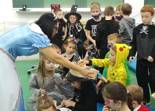 Do zabawy włączyli się też uczniowie zdalnego nauczania i przed monitorami stawili się w bajkowych przebraniach. Tradycji musiało stać się zadość.