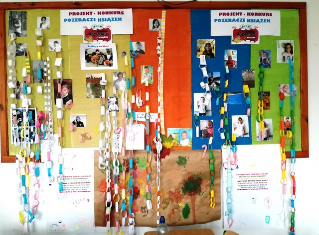 Rozpoczęliśmy go w II semestrze roku szkolnego 2019/2020 i wtedy w każdej klasie (I-III) zawisła klasowa „tablica - ranking” pożeraczy książek. Przez cały semestr uczniowie mieli rywalizować w ilości przeczytanych książek, oznaczając na tablicy, przy swoim zdjęciu, każdą przeczytaną – „pożartą” książkę łańcuszkiem, składającym się z ogniw przeczytanych tytułów.