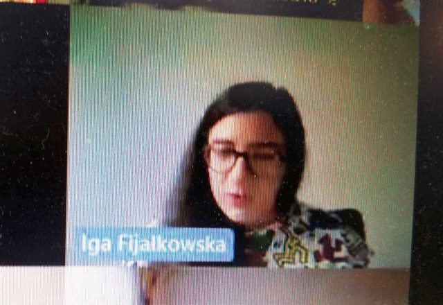 Klasę liderów czytelniczych projektów, odwiedziła wirtualnie pani Iga Fijałkowska – przedstawicielka Wydawnictw Dwie Siostry. Wydawnictwa wyjątkowego, nietuzinkowego i nowatorskiego w swoim spojrzeniu na czytelnictwo. Kto zna, wie o czym mówimy. Mądre treści, wyrazisty styl oraz oryginalna grafika. A do tego wiele płaszczyzn na jakich można pracować z publikacjami. Wydawnictwo jest laureatem wielu nagród rynku księgarskiego.