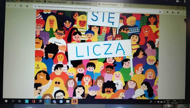 Spotkanie odbyło się w ramach akcji, zainicjowanej przez wydawnictwo: ZAPROŚ DWIE SIOSTRY NA ZDALNĄ LEKCJĘ! No i zaprosiliśmy. W ciepłej, przedświątecznej atmosferze rozmawialiśmy o drodze książki do księgarni i biblioteki. Zastanawialiśmy się wspólnie czy warto czytać i dlaczego. Przenieśliśmy się także do świata jednej z dwusiostrzanych publikacji „Wszyscy się liczą”.