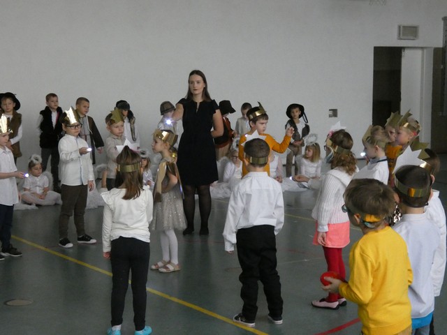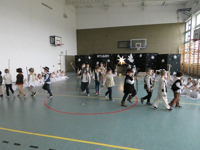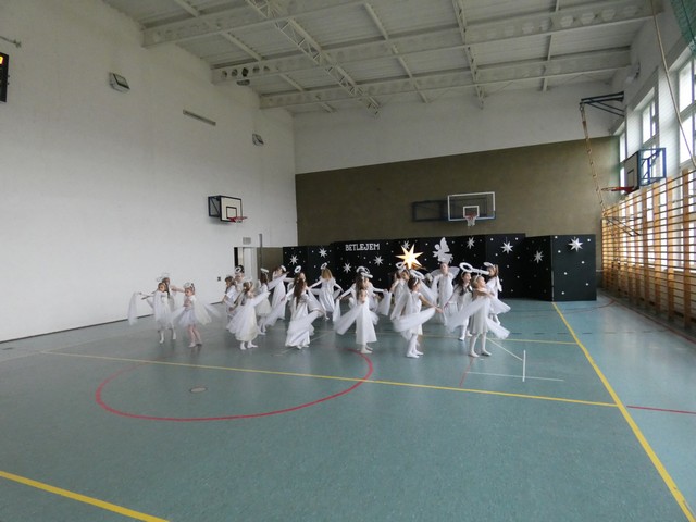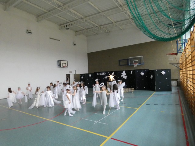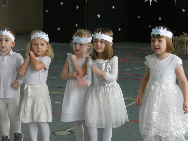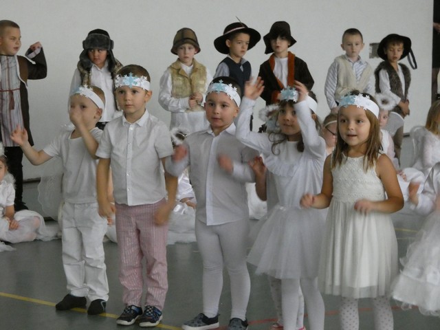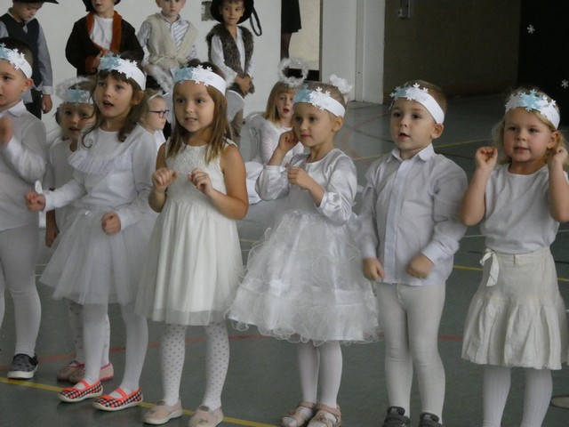 Aniołki wdzięcznymi ruchami skrzydeł zadawały Maryi pytania, pasterze tanecznym krokiem obiegli szopkę, mała święcąca gwiazdka zaprowadziła dzieci do Betlejem, aby nikt się nie spóźnił, a wszystko zasypał padający śnieg przy dźwiękach dzwoniących sań.