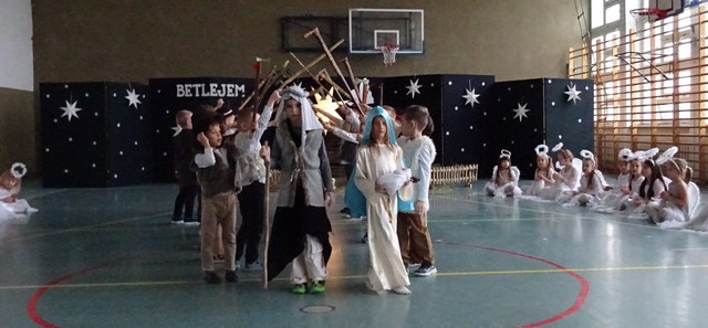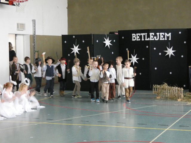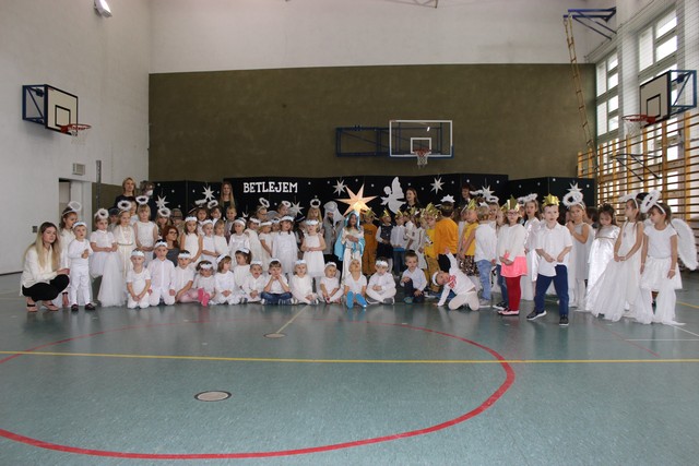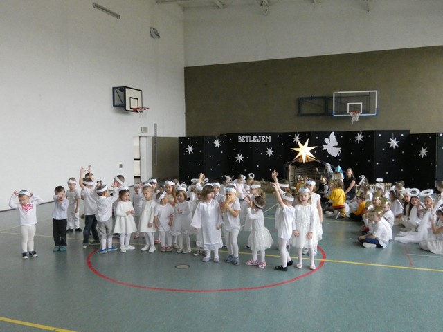 18 grudnia przedszkolaki ze wszystkich grup: Biedroneczek, Sówek, Misiów, Wiewióreczek i Pliszki, przeniosły nas w netypowy sposób do Betlejem, do wydarzeń sprzed dwóch tysięcy lat, do narodzin Jezusa.