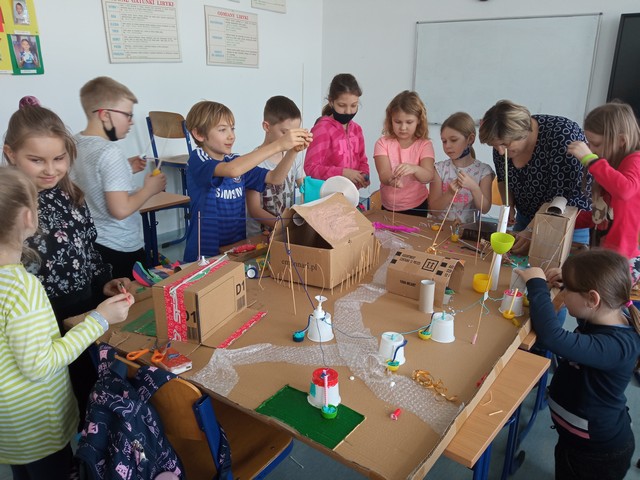 Mali Naukowcy finiszują z drugim modułem projektu edukacyjnego Być jak Ignacy "Nauka to przyszłość”. W trakcie nauki zdalnej oraz już po powrocie do szkoły uczniowie zapoznawali się z zagadnieniami ekologicznymi. Segregowali odpady, dbali o jakość powietrza, wód oraz bioróżnorodność. Ostatnie zajęcia Mali Naukowcy poświęcili na tworzenie makiety konkursowej miasta "Odpadkowo", w którym to mieszkańcy oszczędzają wodę, korzystają z energii pochodzącej ze źródeł odnawialnych, dbają o środowisko. Pomysłowość oraz kreatywność dzieci nie zna granic, a nauka przez zabawę przynosi fantastyczne rezultaty.