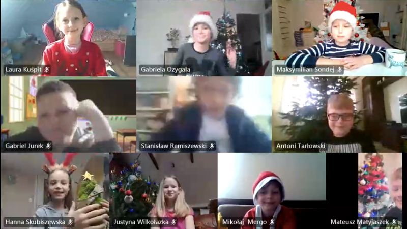 W czasie pandemii nie mogliśmy zorganizować przedświątecznego spotkania w szkole. Zabrakło dekorowania sali i świątecznych smakołyków przy wspólnym stole. Mimo to, uczniowie z klasy trzeciej, wraz z wychowawcą nie rezygnowali z tego wydarzenia i zorganizowali Wigilię klasową w formie zdalnej. Stworzyliśmy odpowiednią atmosferę zakładając świąteczny element ubioru, jedzenie przy wspólnym stole zastąpiliśmy wcześniej przygotowanymi przekąskami i herbatą. Zadbaliśmy także o świąteczny wystrój naszych domów. To spotkanie, na którym rozmawialiśmy o bożonarodzeniowych zwyczajach, podniosło wszystkich na duchu i dało poczucie normalności. Ponieważ Wigilia nie odbywa się bez wspólnego kolędowania, to na naszym spotkaniu też nie mogło zabraknąć tego elementu. Pięknie zagrali kolędy: Julka Sadura (gitara klasyczna), Justynka Wilkołazka i Antek Tarłowski (keyboard). Na zakończenie wysłuchaliśmy „Gore gwiazda Jezusowi”, złożyliśmy sobie świąteczne życzenia i poczuliśmy bliskość mimo przebywania osobno.