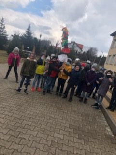 Uczniowie klas I-III nie mogąc doczekać się wiosny chwilę przed jej nadejściem