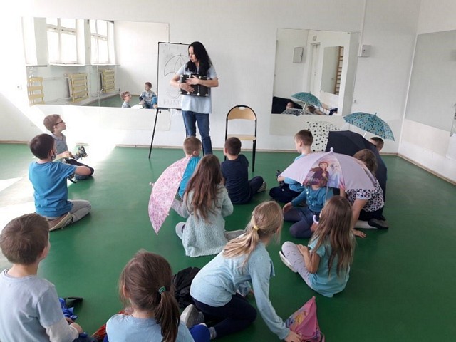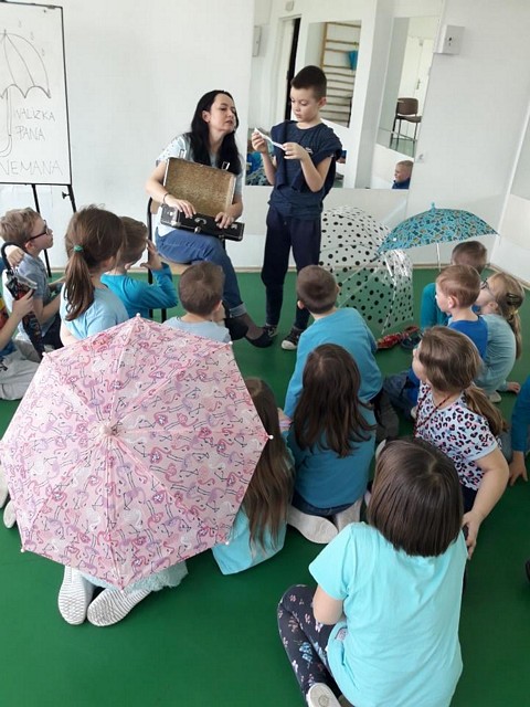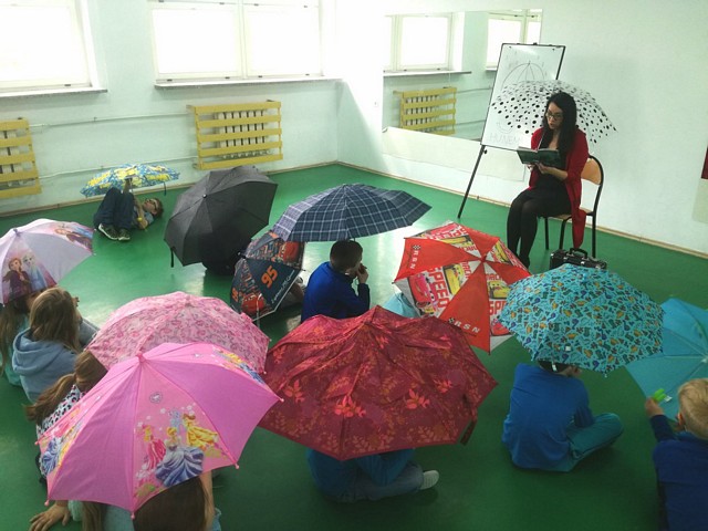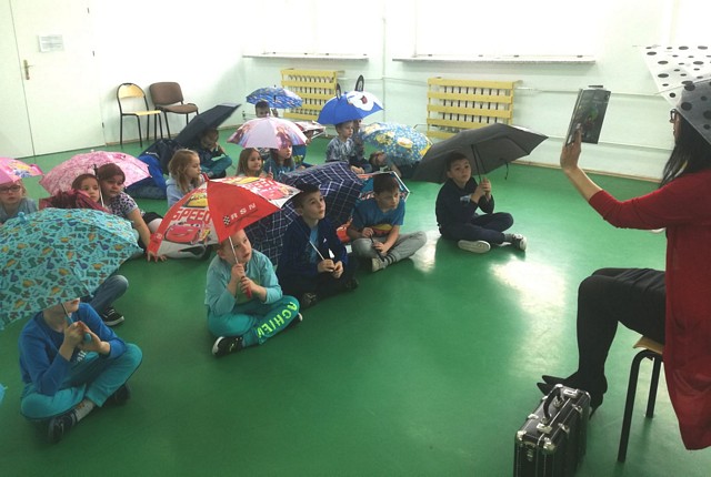 Tym razem czytaliśmy pod parasolami - bo pogoda, ta w książce, (ale i ta za oknem) "pod psem". Mieliśmy też ze sobą zagadkową walizkę, która wypadła z cyrkowego taboru. Co w niej było?
