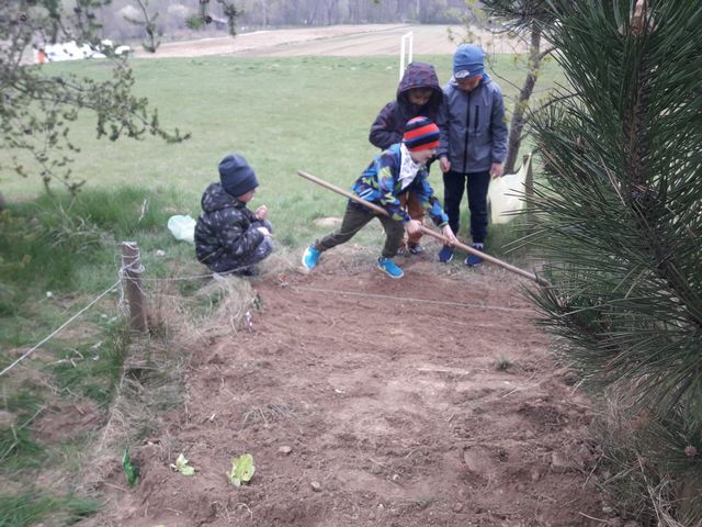 Z zapałem sadzili, cebulę oraz sałatę. Siali rzodkiewkę, koperek, słoneczniki i kwiaty.