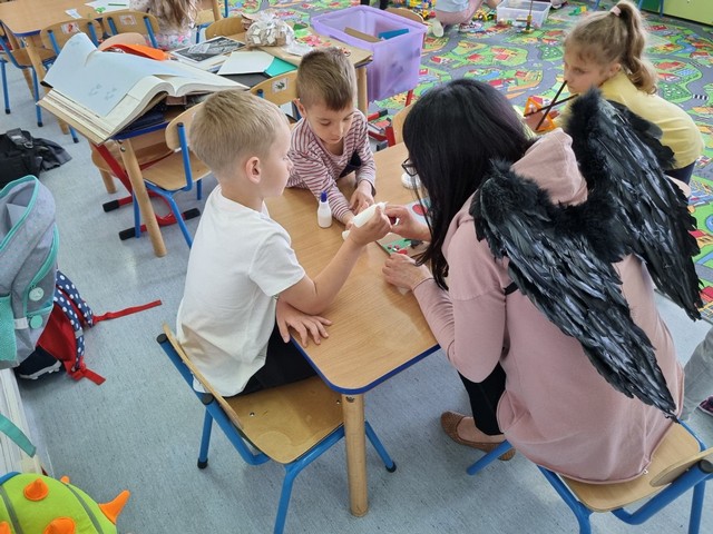 Słuchając tekstu książki pt. „Co robią uczucia” T. Oziewicz poznawały swoje emocje, eksperymentowały w gabinecie luster i tworzyły swoje własne lustra. Dowiedziały się jak powstaje książka, jaka jest historia książki i stworzyły własny kącik ,,Retro książki” – zbiór publikacji przyniesionych przez dzieci - książka z dzieciństwa rodziców lub najstarsza książka w domu oraz najstarsze książki w szkolnej bibliotece.