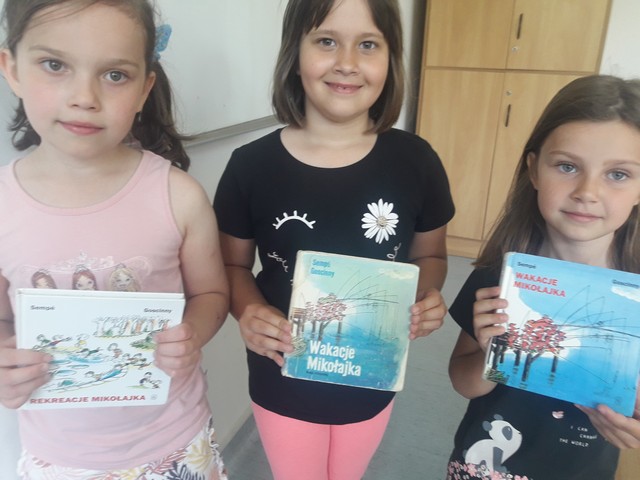 Klasy I-III również uczciły ten dzień „uwalniając” lekturę „Wakacje Mikołajka” R. Goscinny, J. J. Sempe. Czytaliśmy fragmenty książki w plenerze czując tak jak Mikołajek słoneczny powiew wakacji.